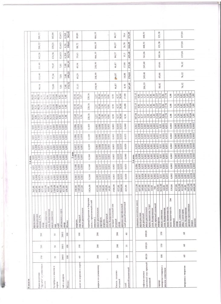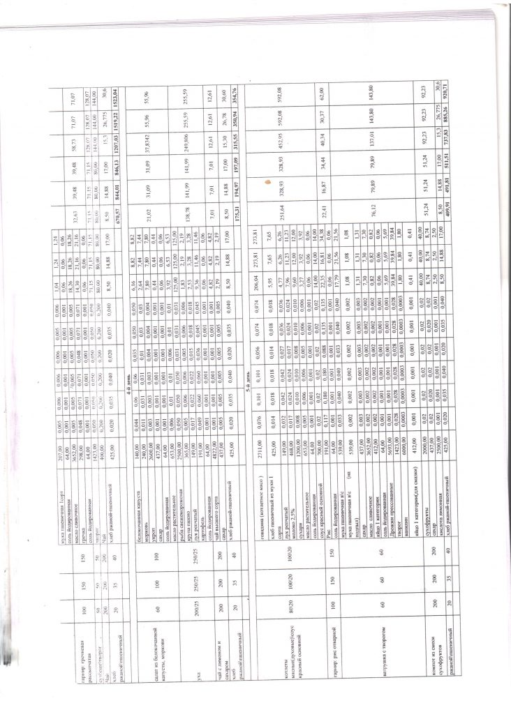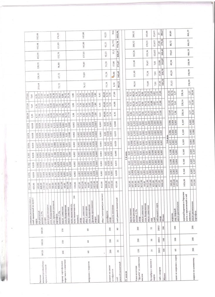 Расчет стоимости рациона питания |